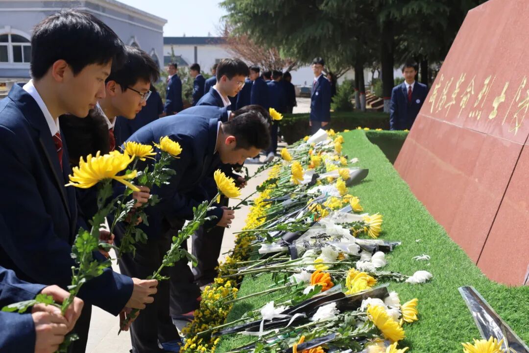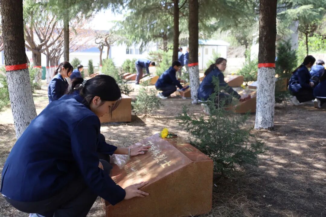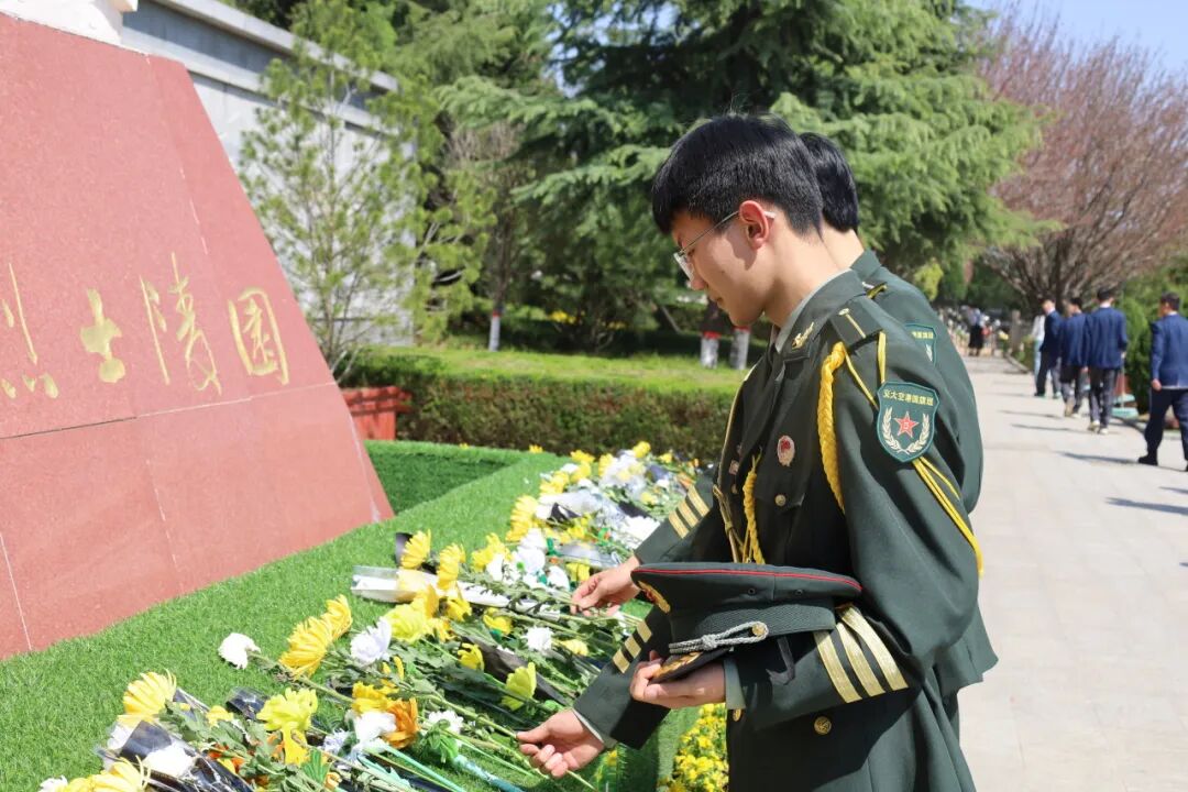 4月1日下午,师生们在学校南门集合后统一前往烈士陵园。午后的陵园庄严肃穆,松柏苍翠,全体师生整齐列队,神情庄重肃穆。