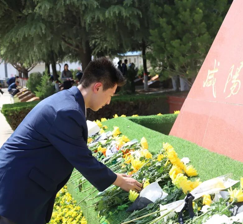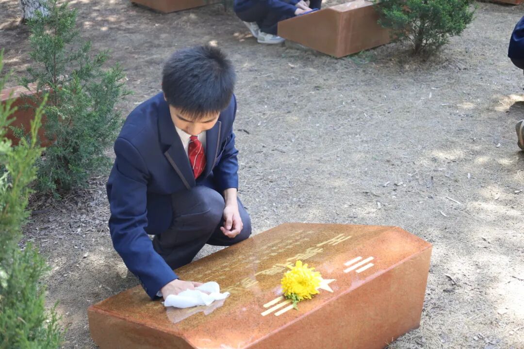 随后,同学们手持鲜花,依次来到纪念碑前,轻轻将鲜花敬献于碑旁,俯身寄托哀思。同学们用最质朴的方式告慰英魂,每一次俯身、每一次献花,都满含崇高敬意与无限感恩。